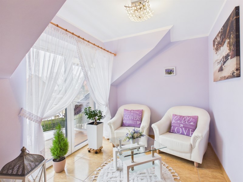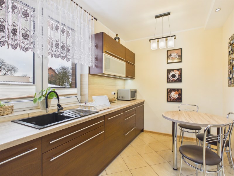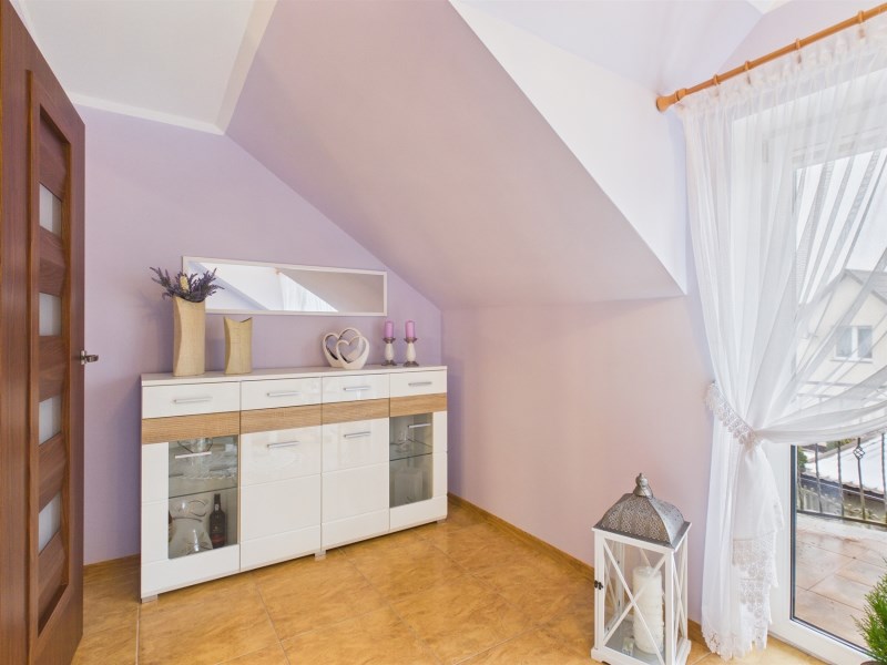 Ściany gipsowane/malowane, na podłodze panele oraz terakota. Stolarka okienna PCV