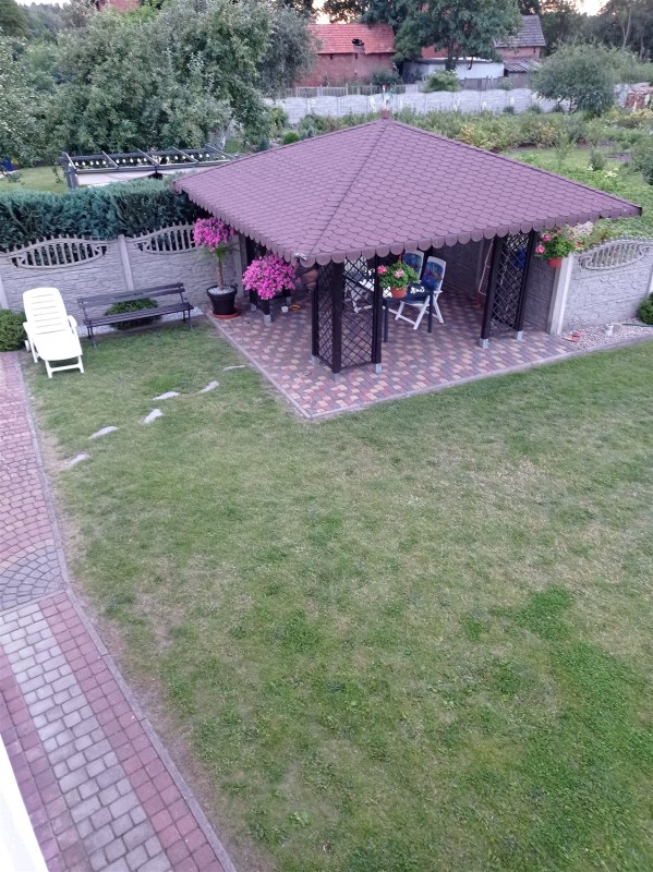 Działka o pow. 1103m2 zagospodarowana, z rekreacyjną wiatą oraz dodatkowo wolnostojącym dwustanowiskowym garażem (budynkiem gospodarczym). Cześć działki wyłożona polbrukiem, cześć z zielonymi nasadzeniami