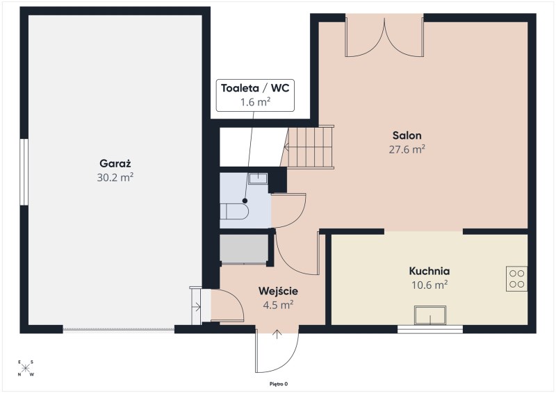 - słoneczny salon o pow. 25,21m2 z wyjściem na taras