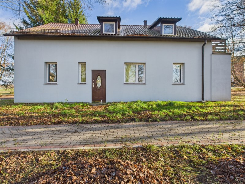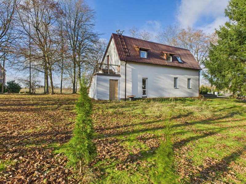 Przedmiotem oferty jest działka o pow. 411 m2 zabudowana domem o funkcji mieszkalno - usługowej, wolnostojącym dwukondygnacyjnym o pow. całkowitej ok. 139 m2, pow. użytkowej ok. 128 m2. Dom wybudowany metodą tradycyjną, murowany z cegły, ocieplony styropianem. Dach konstrukcji drewnianej kryty blachodachówką . Wymienione poszycie dachu rynny, stolarka okienna 2 lata temu. Na podłodze panele w aneksie kuchennym i łazience terakota. Wymieniona instalacja elektryczna i wodno-kanalizacyjna . Dom ogrzewany grzejnikami elektrycznymi. Do tej pory służył właścicielom wyłącznie dla zaspokojenia potrzeb rekreacyjnych.