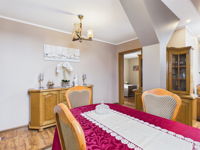 Na piętro prowadzi niezależne wejście z przedsionka, a dodatkowo obie części domu posiadają oddzielne liczniki energii elektrycznej.