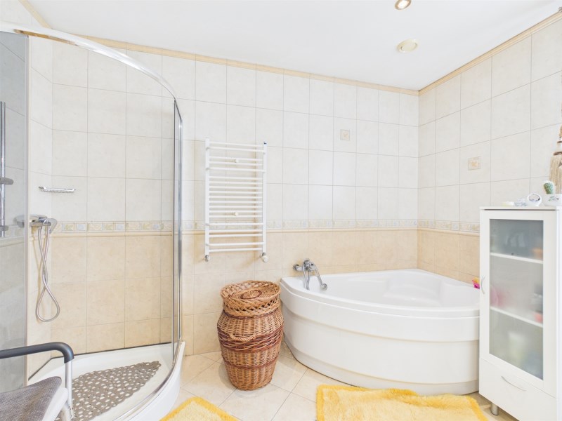 pokój kąpielowy z wanną i prysznicem (pomieszczenie wymagające remontu)