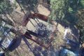Teren ogrodzony, wyłożony kostką brukową. Na działce znajduje się drewniana szopa