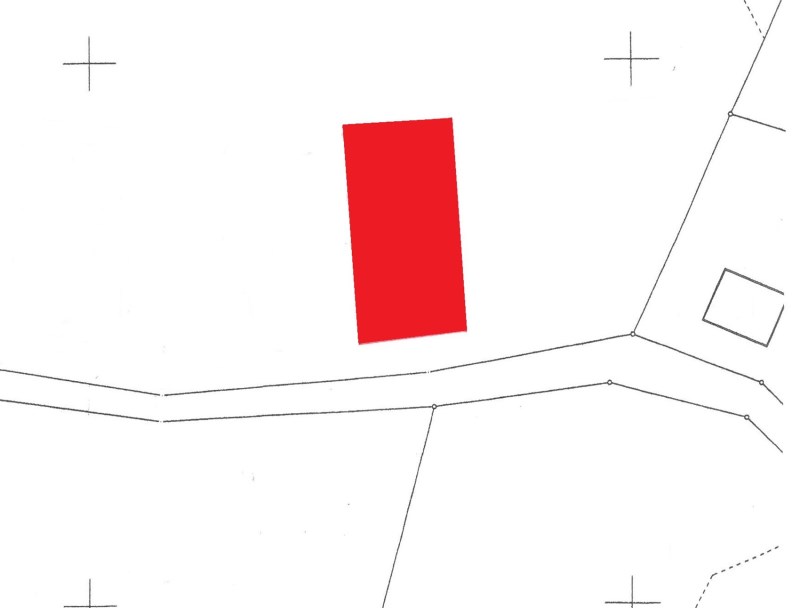 Działka o kształcie prostokąta o powierzchni ok. 800 m2 z dostępem do drogi.