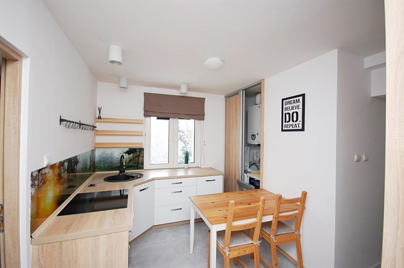 3.Kuchnia-ok 13,80m2 podłoga gres,ściany gipsowane-malowane+szkło lacobel,okno pcv,pełna zabudowa kuchenna+stół z dwoma krzesłami/lite drewno/,wyposażenie AGD-płyta indukcyjna Elektrolux,piekarnik elektr.Candy,zmywarka Amica,lodówka Amica,piec gazowy,dwufunkcyjny-kondensacyjny Termet/3-letni/
