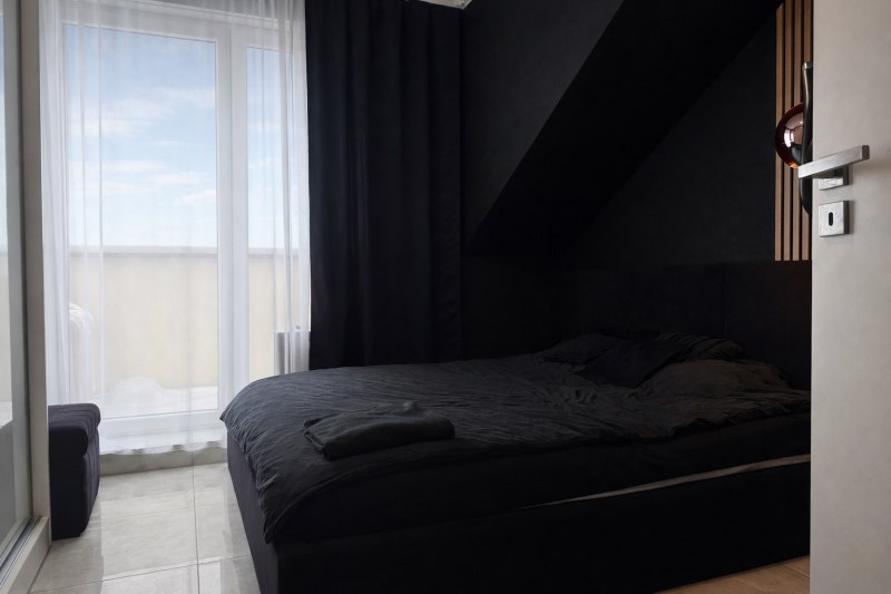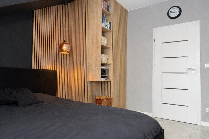 • Główna – 11,52 m², stylowa z lamelami ściennymi, dużą szafą i toaletką oraz wyjściem na balkon,