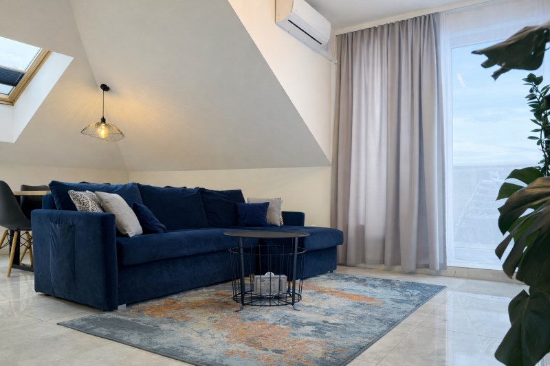 Komfort temperaturowy wzmacnia klimatyzacja w salonie.
