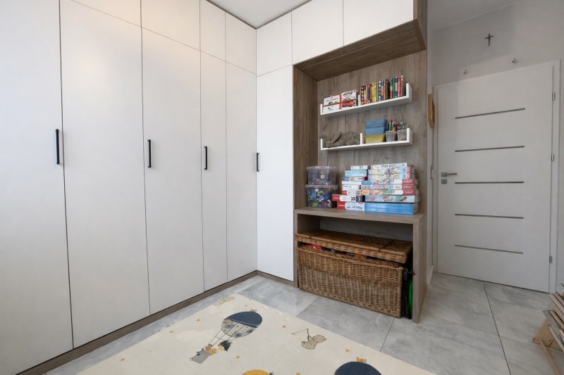 • Druga – 9,23 m², z zabudową (szafa, łóżko rozkładane, biurko). -