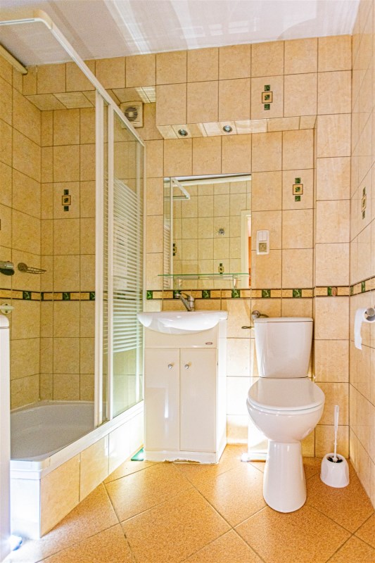 - łazienka z wc i prysznicem oferuje wiele korzyści, w tym oszczędność czasu i wody, łatwość utrzymania w czystości oraz oszczędność miejsca