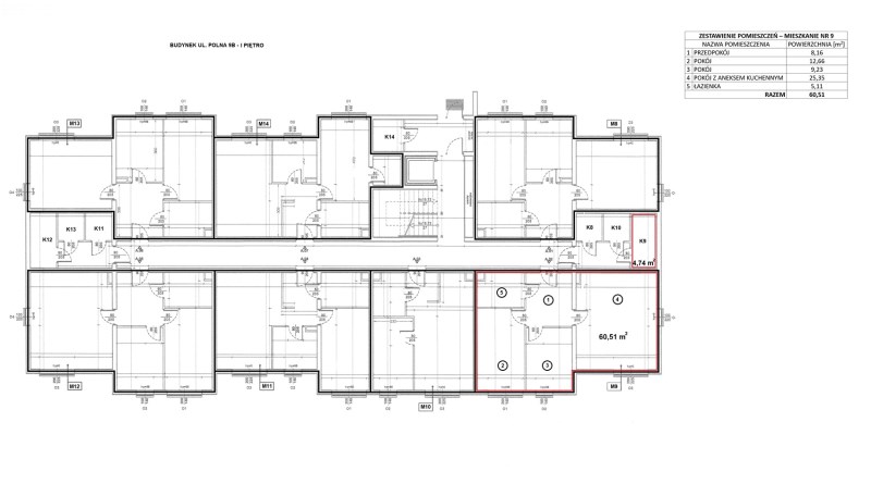 Powierzchnia lokalu mieszkalnego wynosi 60,51 m2, w skład którego wchodzi: