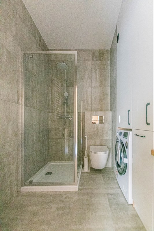 - łazienka wyposażona w zabudowę pod wymiar oraz pralkę