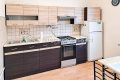 Na podłogach panele podłogowe, kuchnia umeblowana, w łazience glazura, terakota i natrysk.
