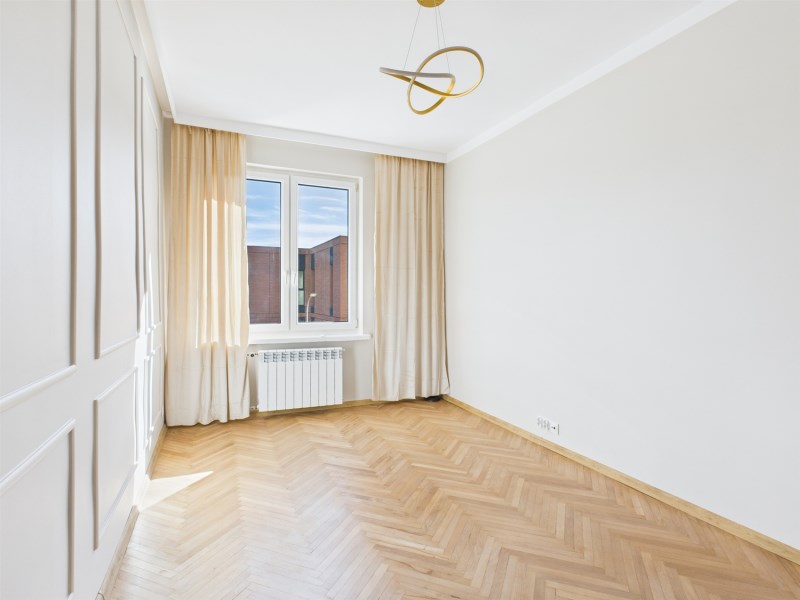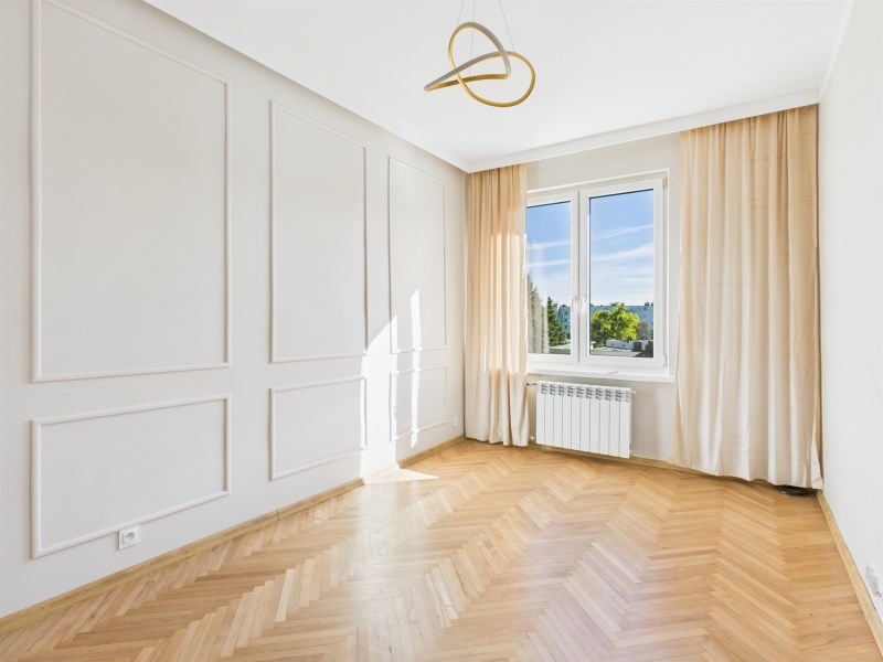 Salon o powierzchni 14 m2, parkiet drewniany cyklinowany (buk) i lakierowany, z możliwością samodzielnej aranżacji i umeblowania;