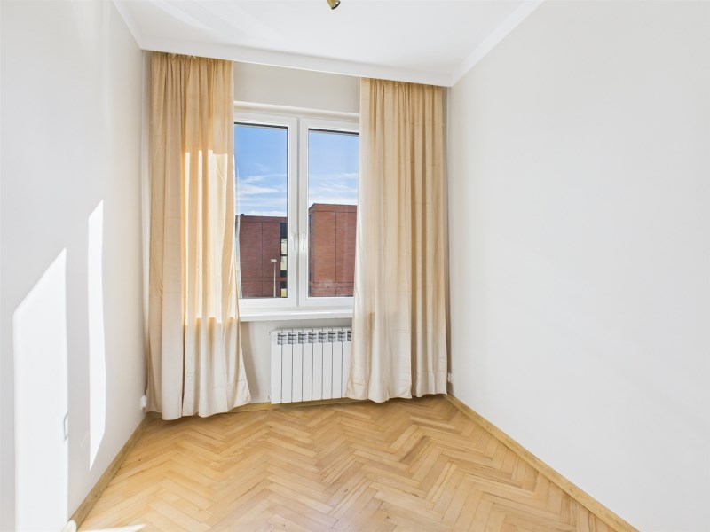 Sypialnia o powierzchni 7,9 m2, parkiet drewniany (buk) cyklinowany i lakierowany, z możliwością aranżacji pod łóżko i szafę;