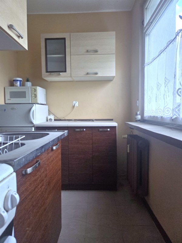 Pokój przestronny, ustawny w kształcie prostokąta z dużym oknem. Kuchnia jest wyposażona w kuchenkę z piekarnikiem oraz meble. Istnieje możliwość połączenia obu tych powierzchni i stworzenie dużej przestrzeni saloniku z aneksem kuchennym.