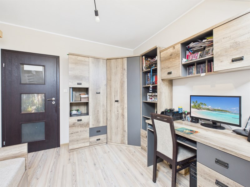 Nieruchomość stanowi dobrą propozycję zarówno dla rodziny, jak i osób poszukujących mieszkania z wyraźnie wydzieloną przestrzenią do pracy i wypoczynku.