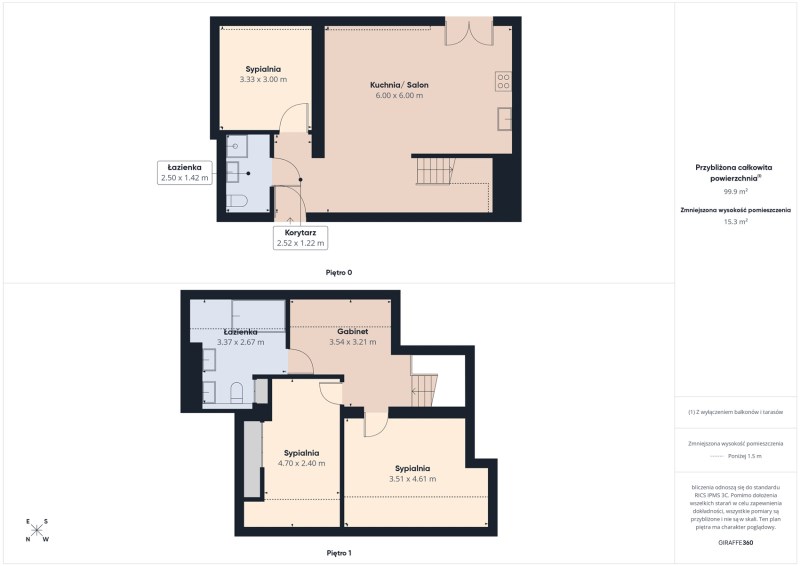 Dwupoziomowy układ zapewnia komfort użytkowania oraz naturalny podział na strefę dzienną i prywatną.