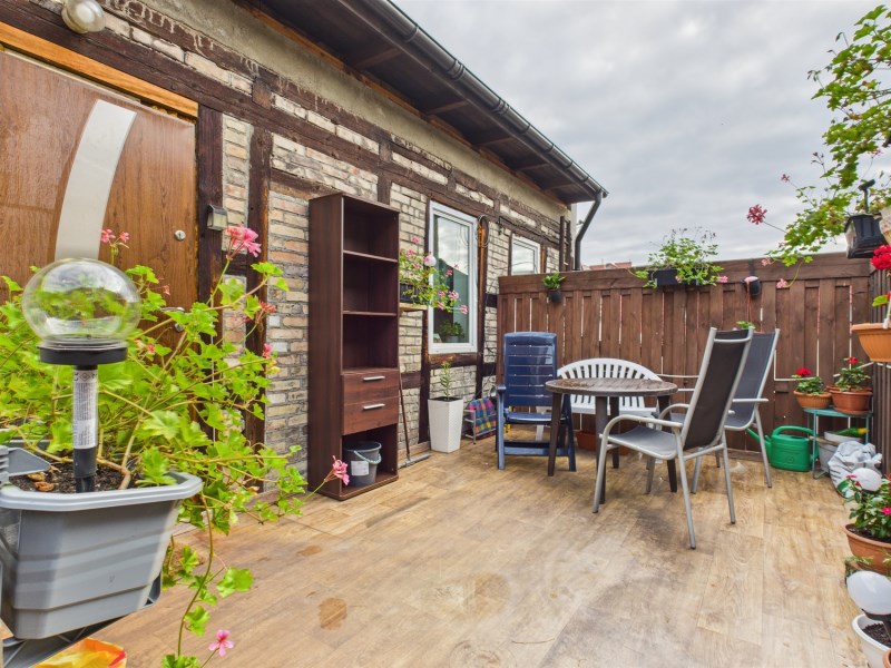 Z drugiej strony działki znajduje się przytulny dom jednorodzinny, w zabudowie szeregowej który zapewnia komfort i prywatność. Do domu przylega przestronny taras, doskonały do relaksu na świeżym powietrzu, stwarza idealne warunki do spędzania wolnego czasu, organizowania spotkań rodzinnych czy wieczorów w gronie najbliższych lub przyjaciół.