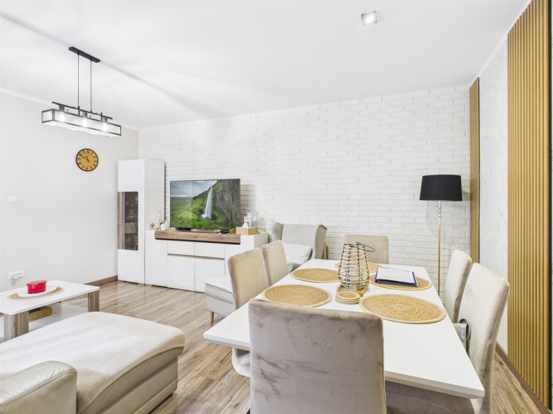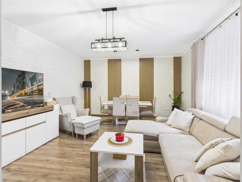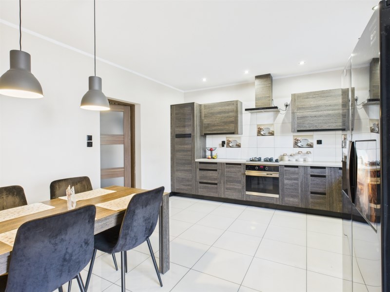 Nieruchomość przeszła kompleksowy remont, łącząc nowoczesne rozwiązania z funkcjonalnym układem przestrzeni. Parter to część dzienna z tarasem - idealna do codziennego relaksu oraz spotkań z rodziną i przyjaciółmi, a wysokiej jakości wykończenia podłóg, ścian i sufitów nadają elegancki i przytulny charakter.