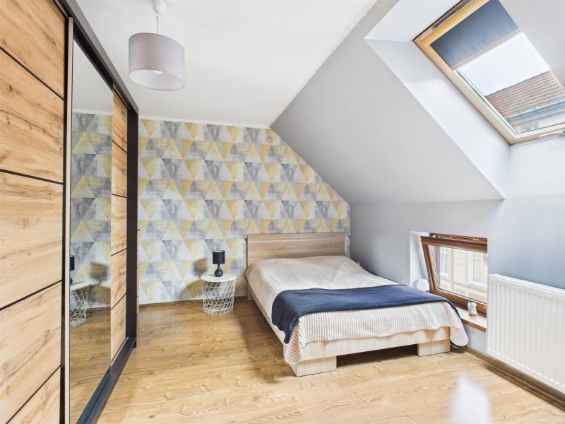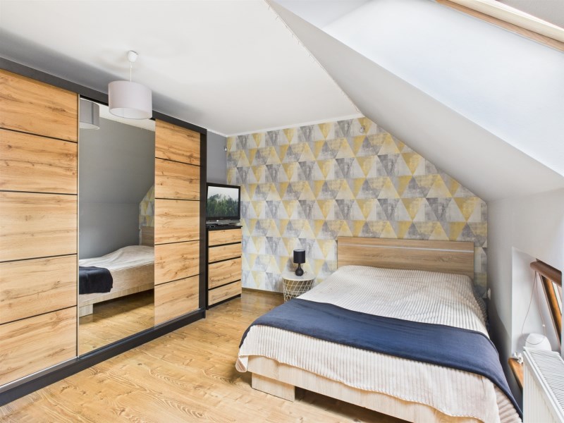 Poddasze zostało zaadaptowane na prywatną część sypialną, oferującą komfort i spokój. Znajdują się tu trzy przytulne sypialnie, każda przestronna. Jest tu także pomieszczenie obecnie wykorzystywane na potrzeby biurowe, oraz pomieszczenie gospodarcze lub miejsce na garderobę. Wnętrza poddasza zostały zaprojektowane z myślą o maksymalnej funkcjonalności, zapewniając komfort użytkowania.