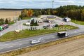 Dogodny zjazd z DK10, lewoskręt umożliwia bezpieczny zjazd pojazdom jadącym w obu kierunkach.